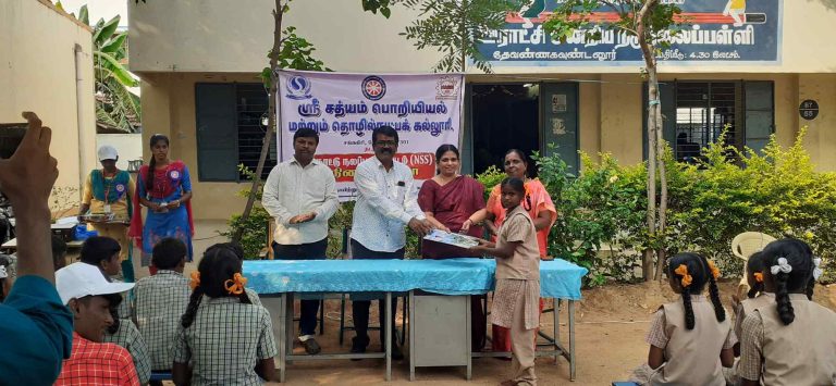 The students feel a sense of responsibility and believe that they need to give back to society and the environment what they have taken. Our NSS Unit student volunteers take up social service activities such as special camps in adopted villages, service to orphanages. Tree plantation, relief camp. All these programs develop in the students a sense of responsibility. Accountability, integrity and human values towards achieving the vision and mission of the situation. Our students collected relief material from the neighbourhood community.